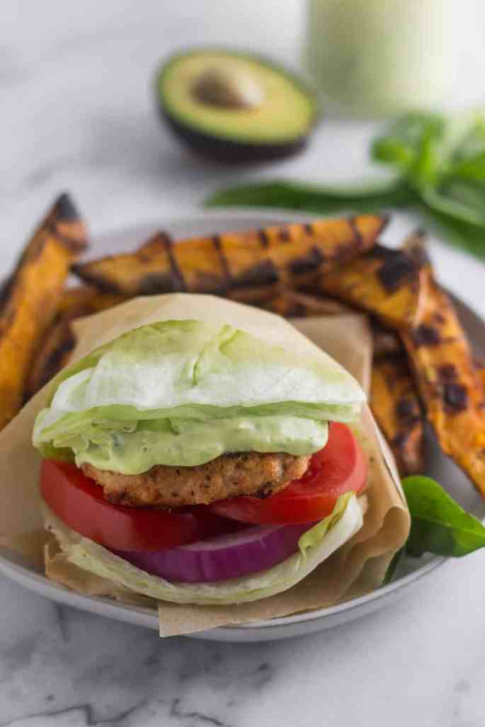 Source: Paleo Sun Dried Tomato Chicken Burgers with Avocado Basil Aioli